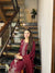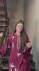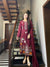 A stunning maroon 3-piece set with intricate embroidery on the front, sleeves, and neckline, complemented by a scallop detail on the back. Paired with a flowing silk dupatta, this ensemble exudes elegance and sophistication.